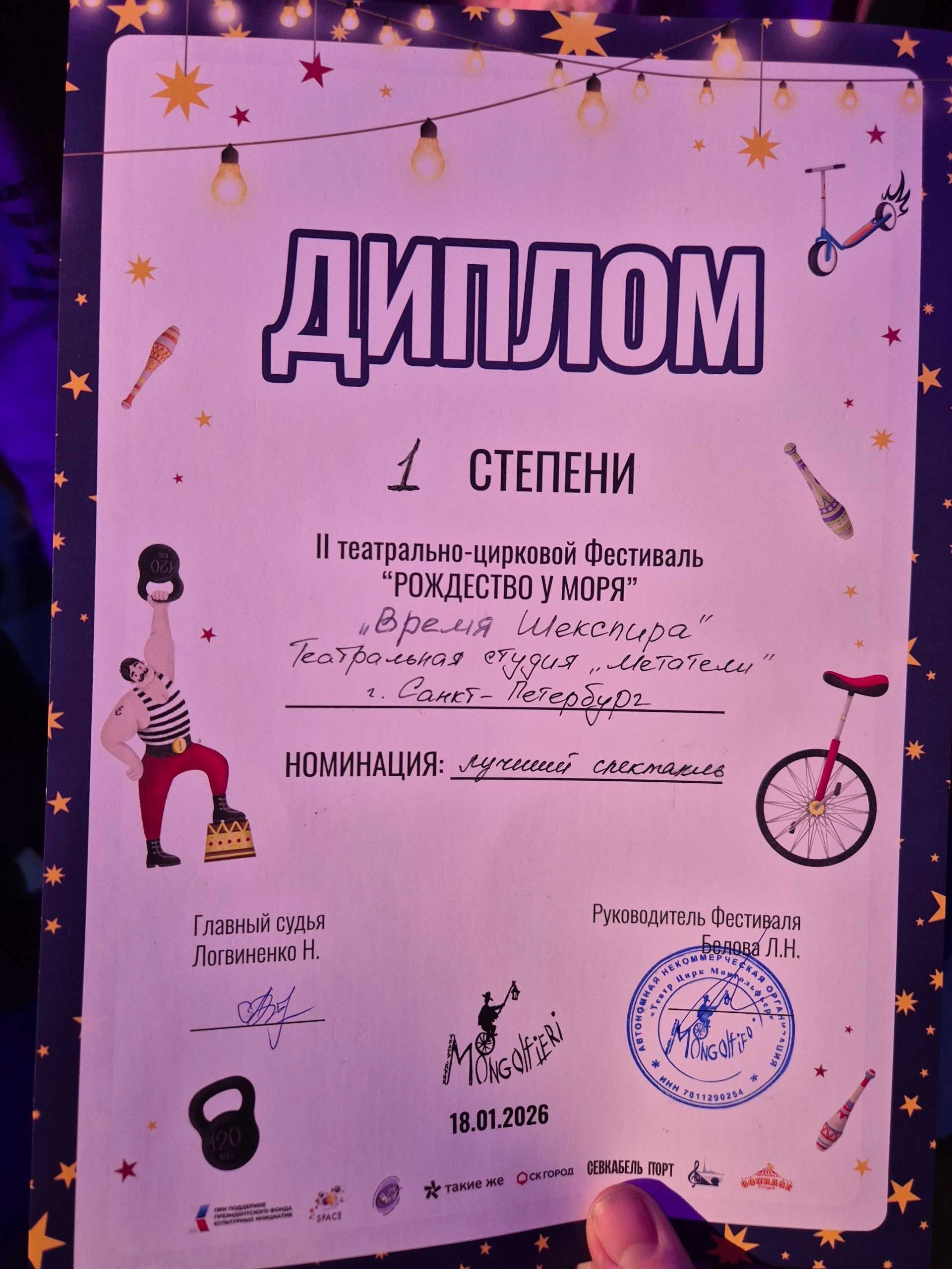 Театральная студия Мечтатели петербургской школы Унисон признана лучшей за спектакль Время Шекспира в номинации Лучший спектакль на ll Всероссийском Фестивале театрально-цирковых коллективов! От всего сердца наши искренние поздравления всему коллективу студии и его руководителям Полине Константиновне Воробьевой, Максиму Владимировичу Студеновскому и Андрею Николаевичу Шимко!!!