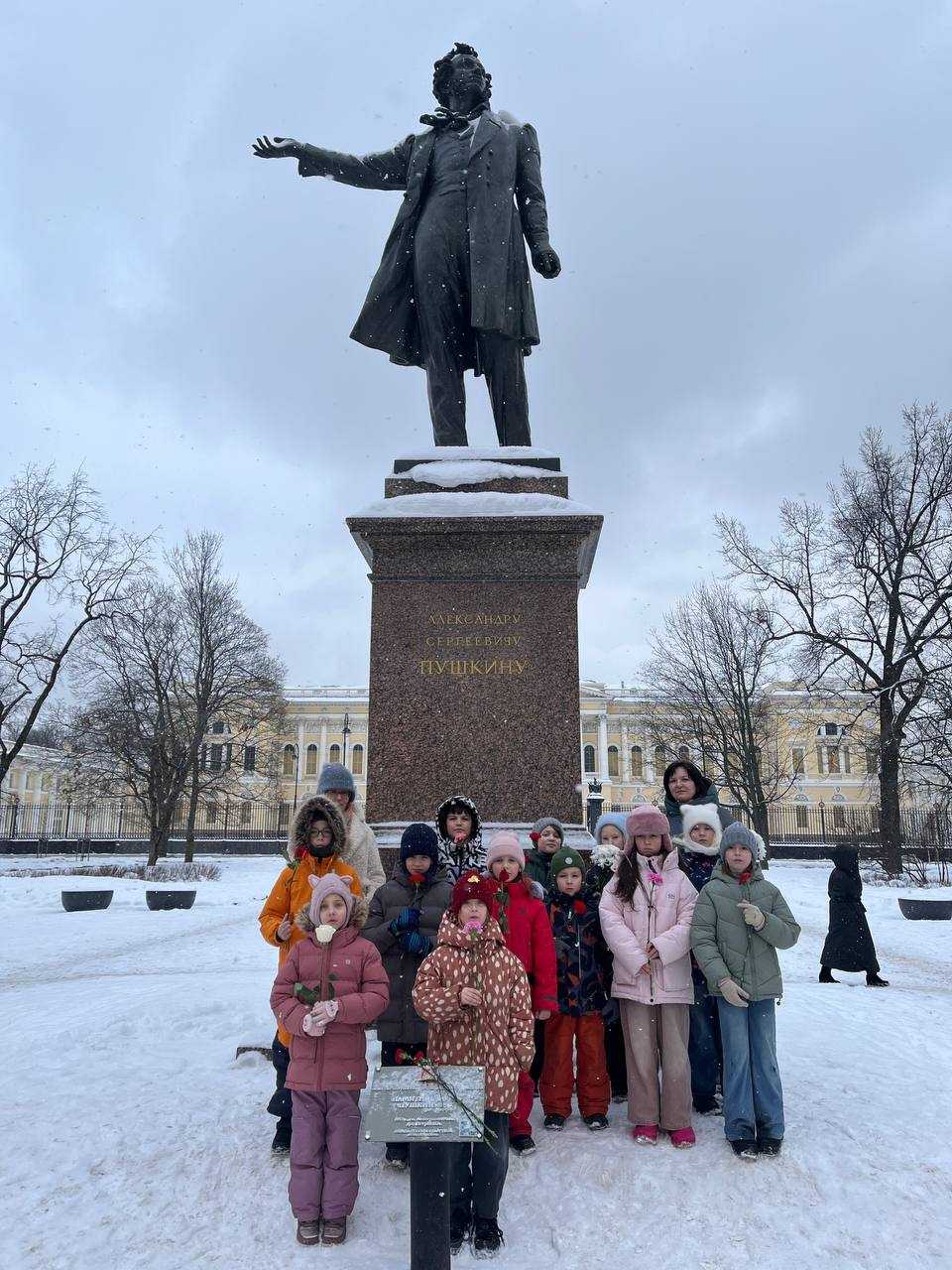 В день смерти Александра Сергеевича Пушкина случилось пронзительное и очень важное событие — ученики начальной школы вышли на площадь Искусств, чтобы почтить память великого поэта. У подножия памятника юные унисоновцы читали любимые пушкинские строфы и возлагали к монументу цветы. Этот трогательный ритуал стал не просто данью памяти, а живым свидетельством того, что Пушкин для нас — не хрестоматийное имя из школьной программы, а важная часть жизни.